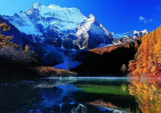gaze at the snow-white peaks of the three sacred mountains in the distance,